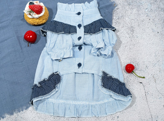 〜7.5kgまで|犬服|縞柄 女の子フリルブラウス&男の子シャツ