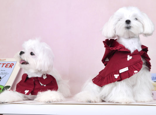 首周り〜23cmまで|犬服|赤ずきん花柄刺繡マント