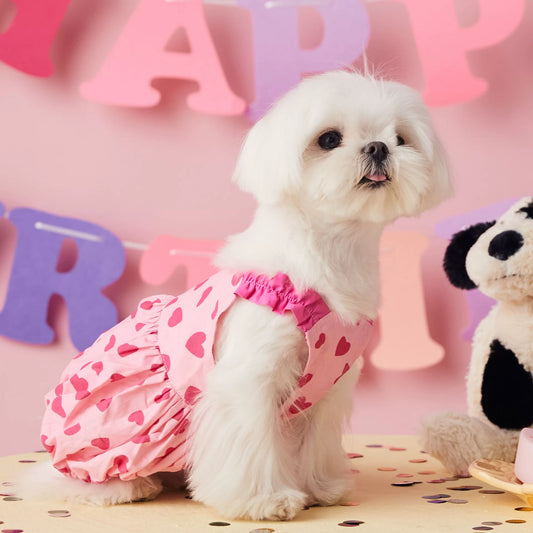 〜11kgまで|犬服|♡ハート柄×ピンクワンピース