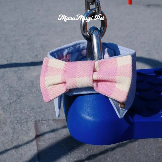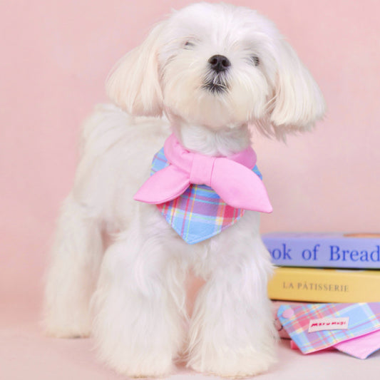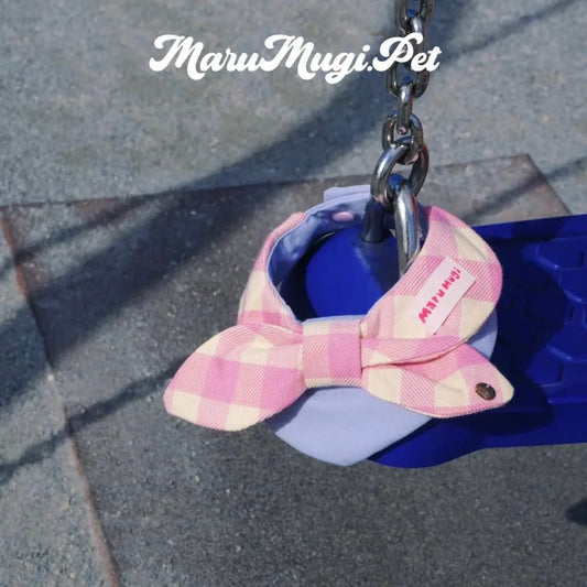 【夏🎀セール12%off】⭐︎Pink⭐︎ 蝶結びチェック柄バンダナ・スタイ 犬猫用つけ襟 犬猫用スタイ よだれかけ ビブ