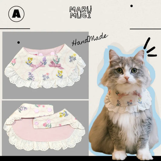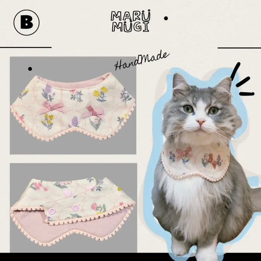 【夏🧊セール♪12%OFF】白地小花柄犬猫用ビブ♡わんちゃんねこちゃんバンダナ|犬用バンダナ|猫バンダナ|猫スタイ|犬スタイ|よだれかけ