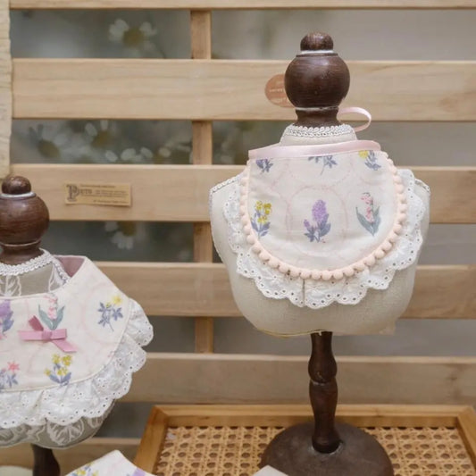 【夏🍀セール♪12%OFF】白地小花柄 犬猫用ビブ♡わんちゃんねこちゃんバンダナ|犬猫用バンダナ|犬猫スタイ|よだれかけ