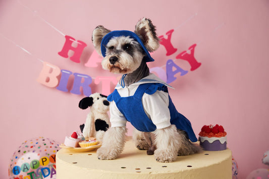 〜11kgまで|犬服|「セーラースタイル」サロペットスカート(帽子付き)❤