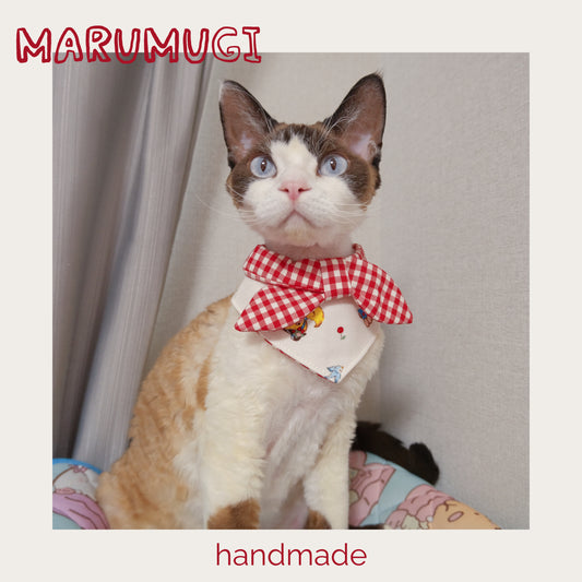 【夏セール☘️♪12%OFF】 赤い格子縞バンダナ・ネクレススタイ 4サイズ 猫スタイ ペットスタイ 犬用スタイ 猫用スタイ よだれかけ ビブ