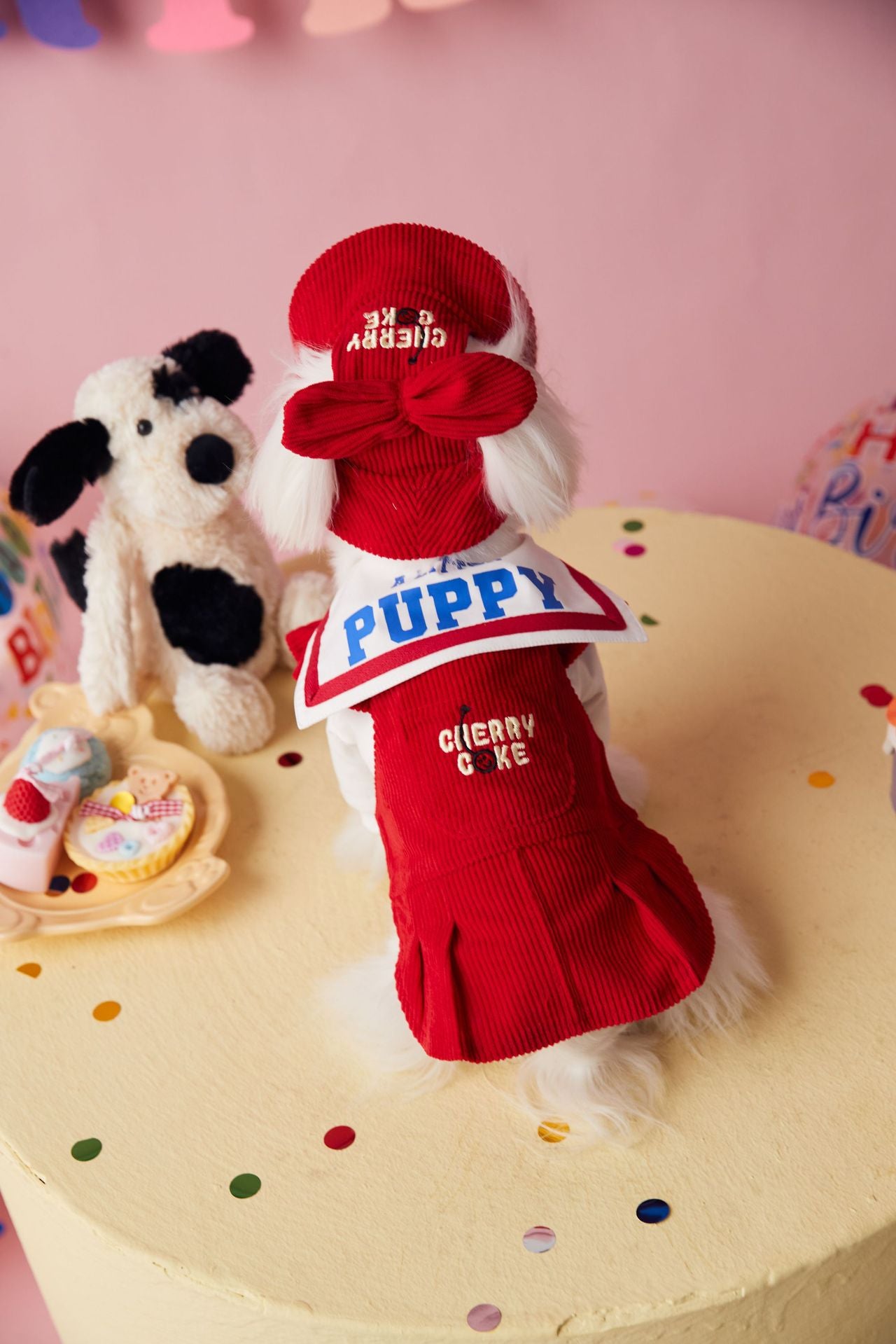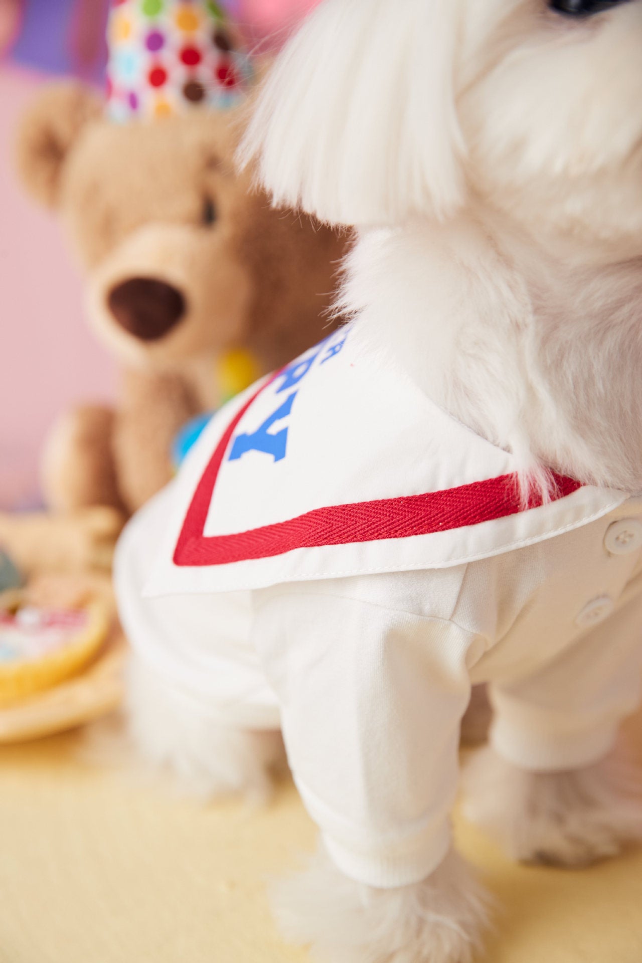 〜11kgまで|犬服|「セーラースタイル」サロペットスカート(帽子付き)❤